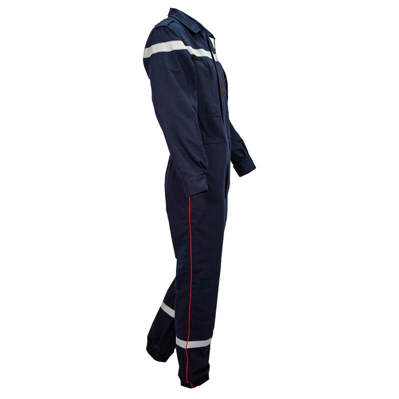 - Bandes rétro-réfléchissantes anti-feu largeur 50 mm sur les bas des jambes